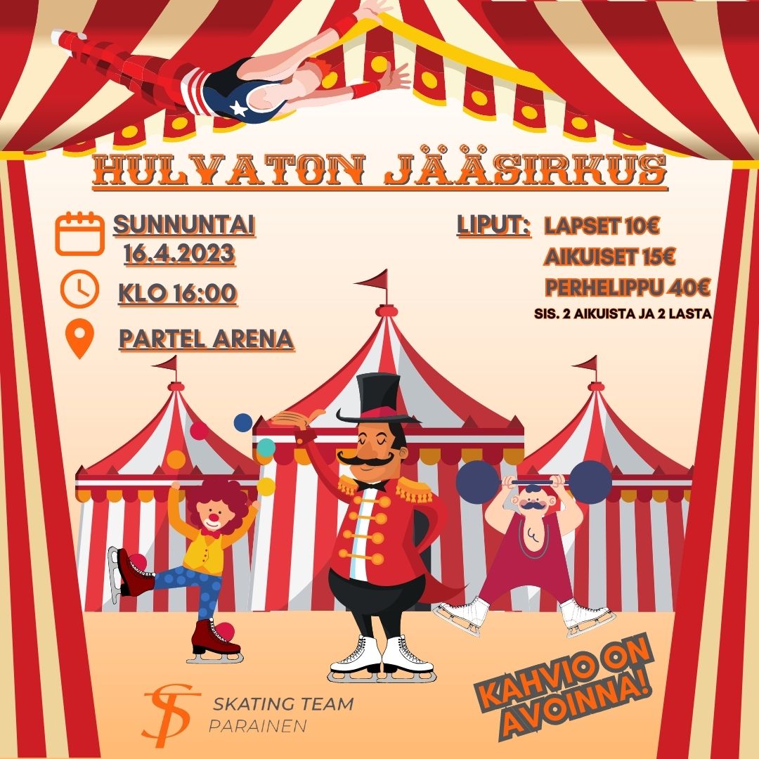 Skating Team Parainen järjestää kevätnäytöksen Hulvaton jääsirkus Paraisten jäähallilla 16.4 klo 16.