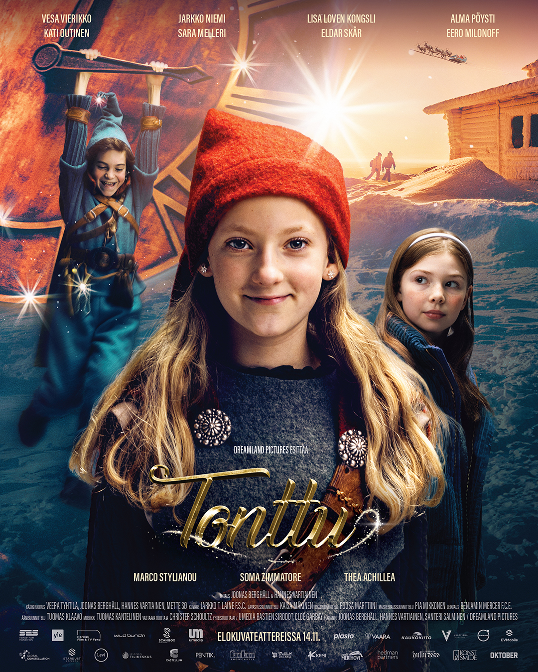 Pääosissa: Lapsirooleissa Soma Zimmatore, Thea Achillea ja Marco Stylianou. Muissa rooleissa: Sara Melleri, Jarkko Niemi, Alma Pöysti, Eero Milonoff, Kati Outinen ja Vesa Vierikko